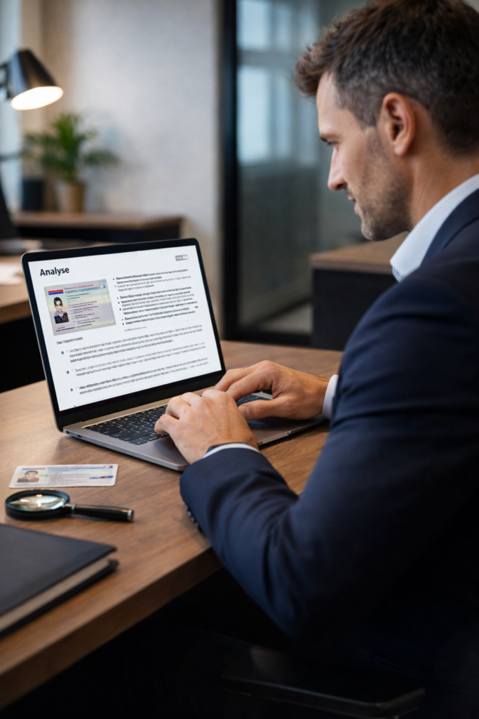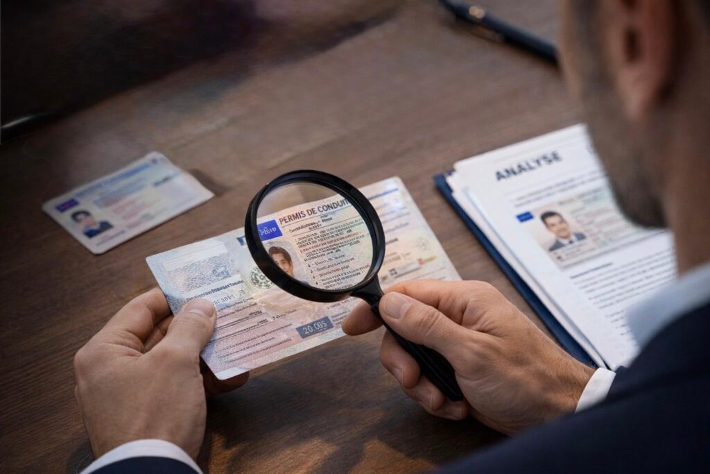Nous analysons permis de conduire, cartes conducteur, titres étrangers avec des méthodes d’examen éprouvées, lecture ZLA, vérification des éléments de sécurité. Chaque anomalie est documentée, chaque conclusion est argumentée.