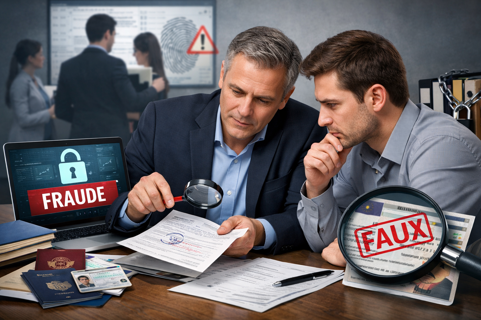 Vous recevez un rapport écrit détaillant les constatations, les anomalies identifiées et leur qualification (falsification, contrefaçon, incohérence, document non reconnu). Le rapport est utilisable dans le cadre d’une procédure RH, d’un litige assurantiel ou d’une transmission aux autorités compétentes.